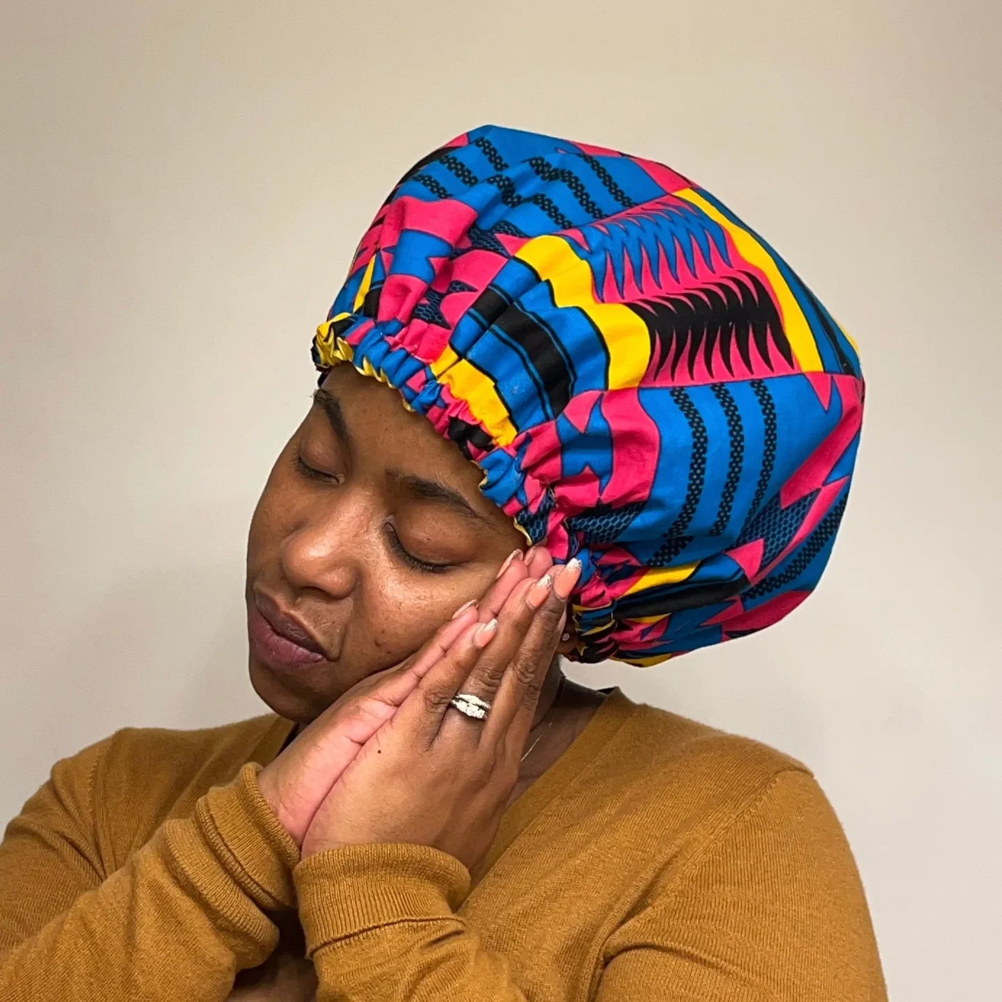 I handmade Afrocentric hair bonnets, headwraps, and other accessories. I am a black stay-at-home.